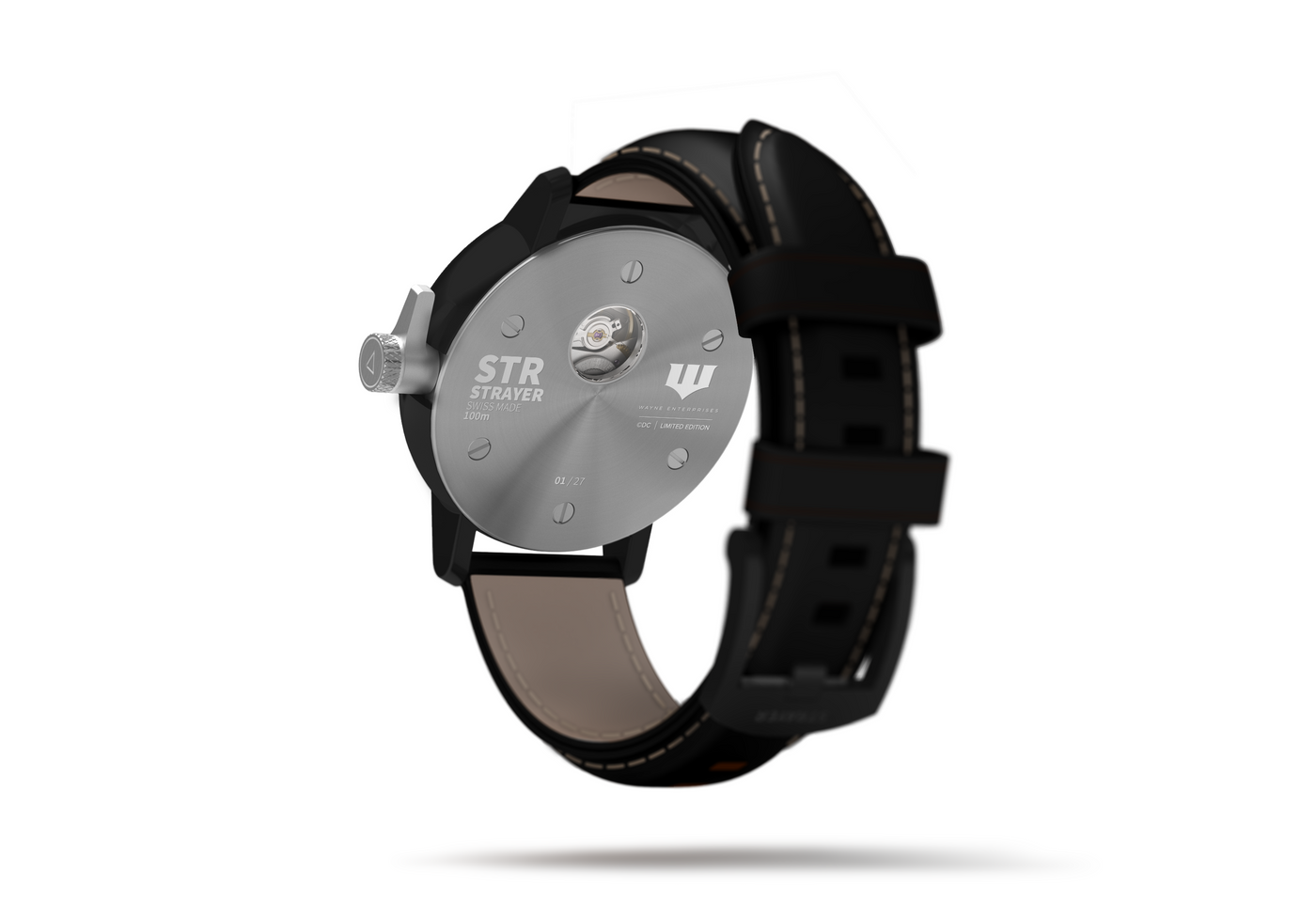 As a tribute to the first time Batman and Bruce Wayne appeared in ©DC Comics no 27, in 1939, Strayer watches received the mission to design and manufacture a limited edition of 27 unique models – “the Dark Knight”. The design of the Dark Knight is based on the unique STR-model that the designer and engineer Ola Stray patented and manufactured