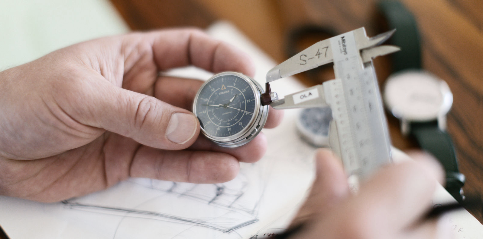 Spare time while I was in my previous role leading a design department in a global organisation was spent developing and fine tuning the watch concept, taking it from a concept to a real product. Being a parallel iterative process consisting of ideation, design, drawings and evaluating prototypes together with the best watch manufacturers in Switzerland. The unique connection between Ola Stray and high end Swiss watch manufacture is evident from the use, in assembly, of two Red Dot Award winning tools designed by Ola in 2018 – thus setting the quality bar for the Strayer watch sky-high.